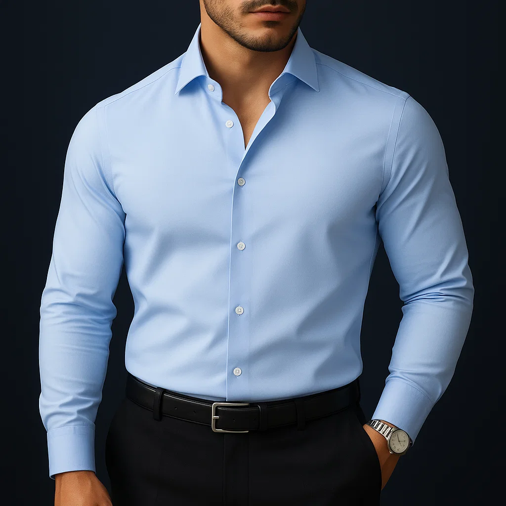 Una camisa formal que se ve correcta en oficina, reuniones y ocasiones donde necesitas verte serio sin exagerar. Minimalista, lisa y con un fit regular que se adapta fácil a tu día.