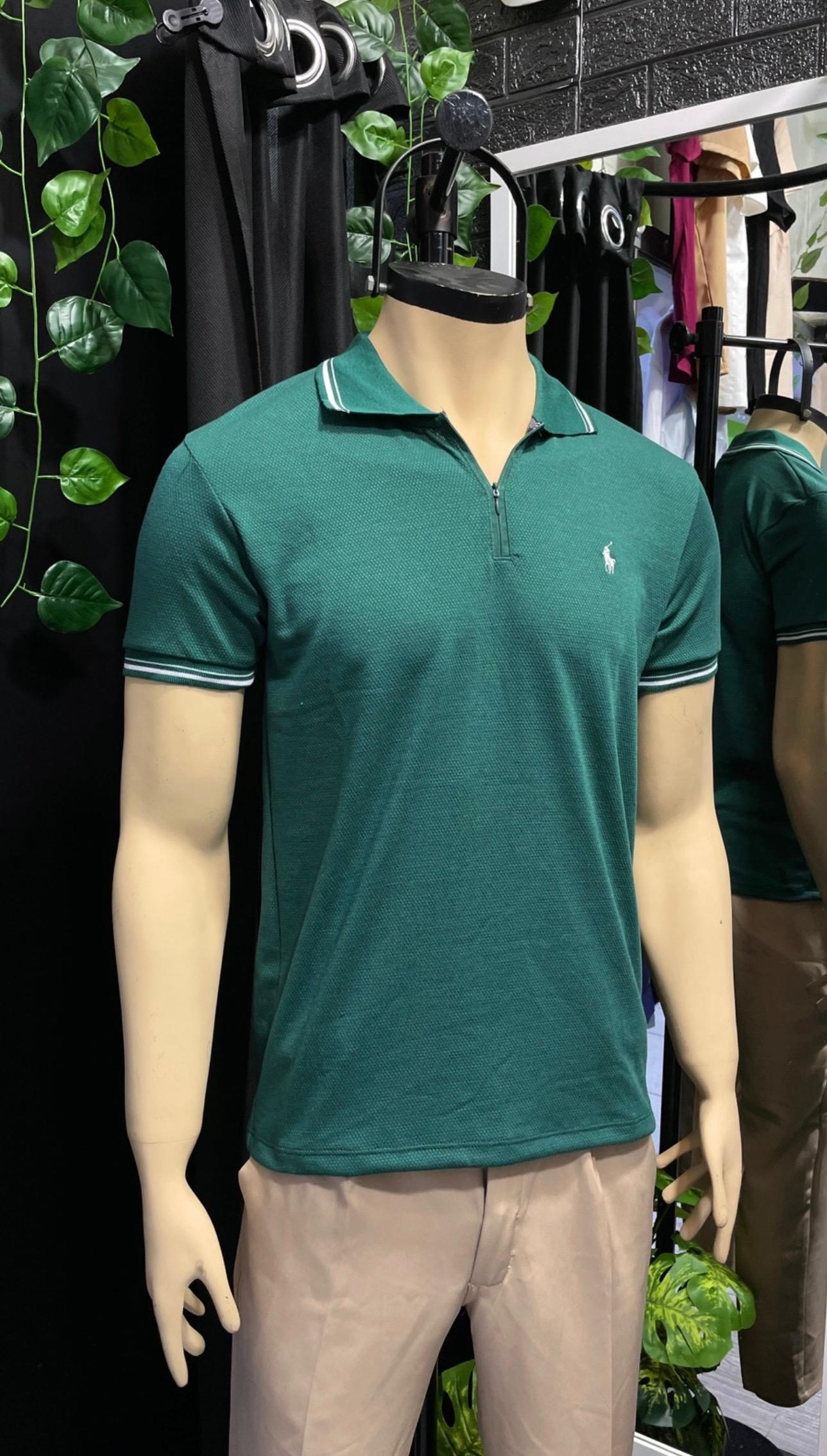 Polo camisero con cierre color Verde Bosque (estilo RL)